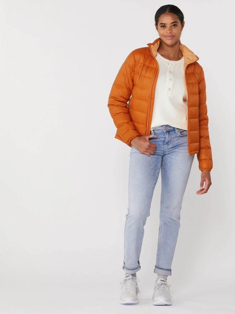 The women’s REI Co-op 650 Down jacket has enough insulation for trail duty, but it’s light enough for everyday wear. The 2.0 version has a recycled nylon shell.