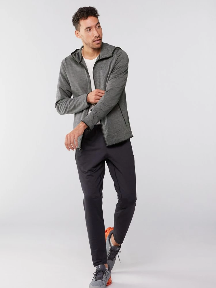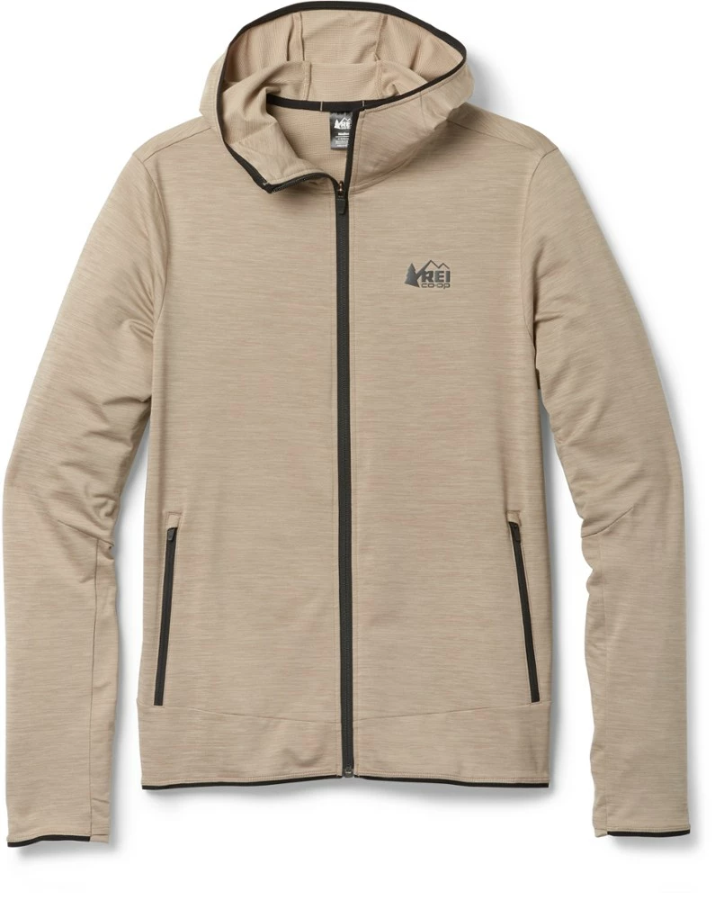 With 4-way stretch and wicking mesh fleece inside, the mid-weight men’s REI Co-op Active Pursuits full-zip hoodie is warm but breathable—ideal for warm-up and cooldown time.