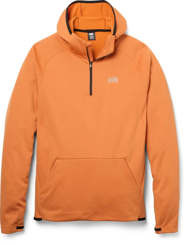 Run, hike and just get out there with the technical warmth of the men’s REI Co-op Active Pursuits tech hoodie. This smooth-faced fleece has a movement-ready fit for heading outside as it gets colder.