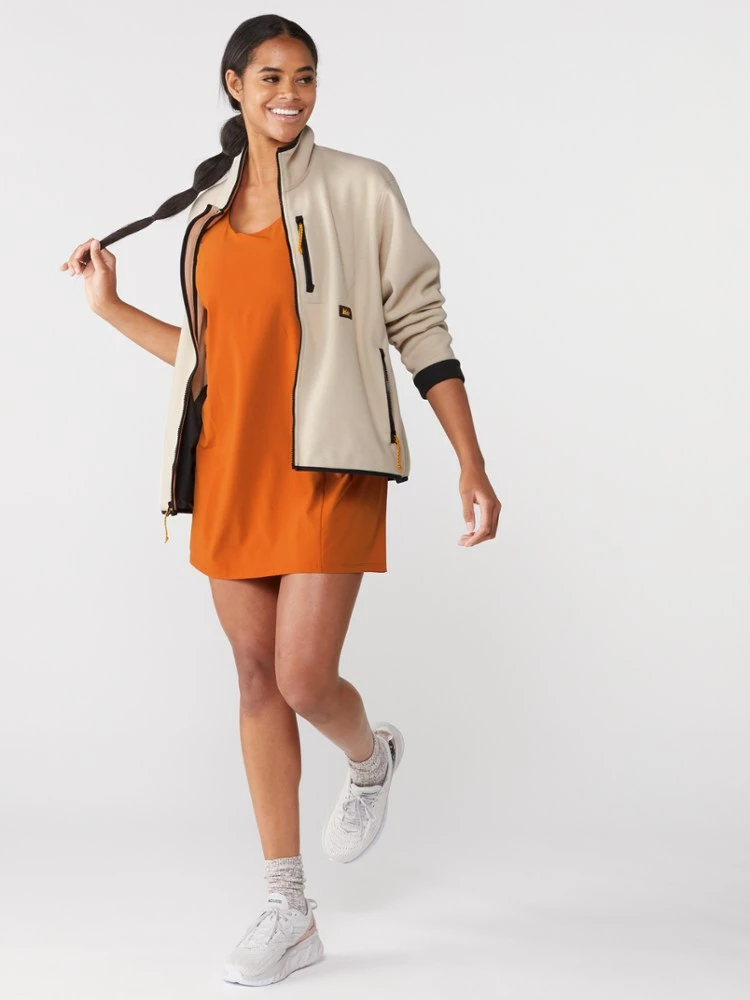 It’s the cool choice for your next hike or run. The women’s REI Co-op Active Pursuits training dress is breathable and stretchy, with a full unitard liner—throw it on and get out there.