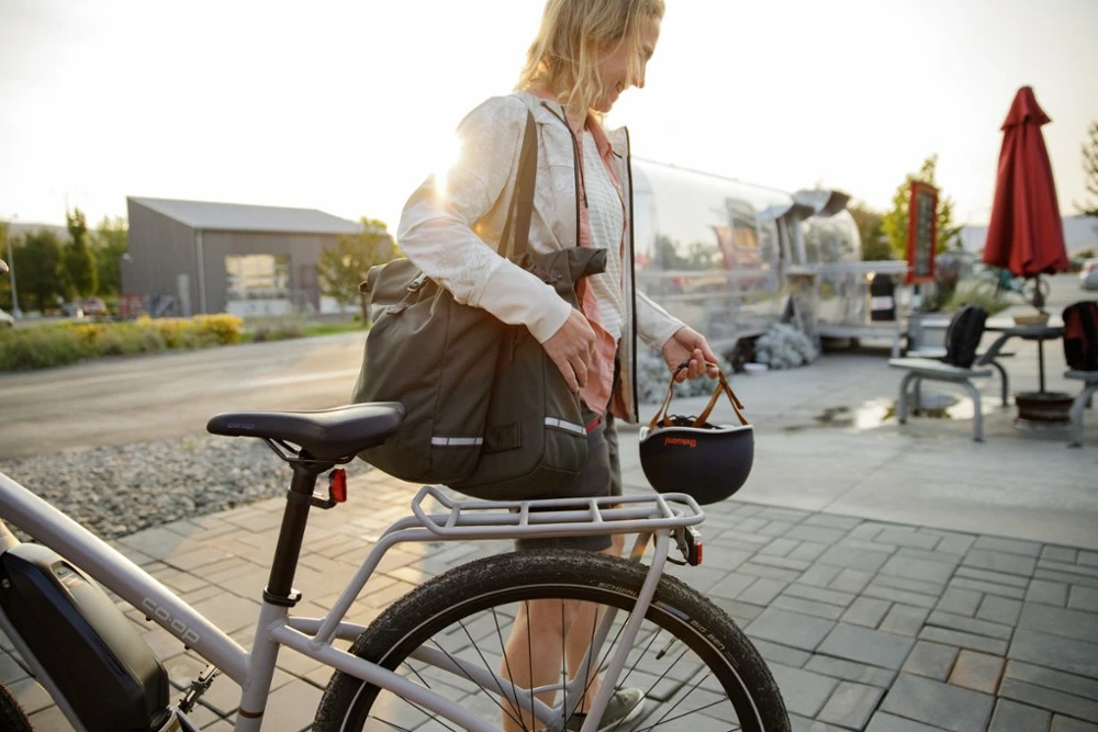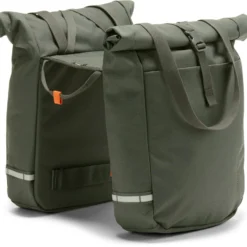 - Off the bike, sling the bags over your shoulder with comfy tote straps