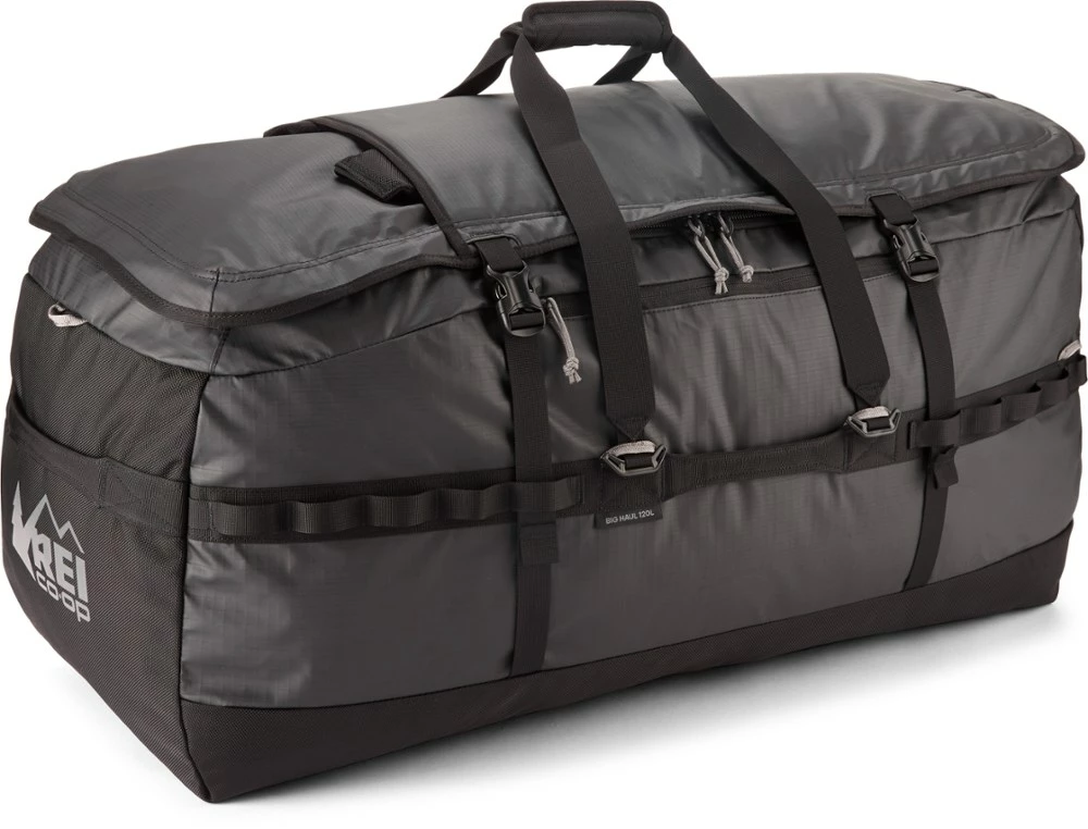 The biggest of Big Hauls, the 120-liter REI Co-op Big Haul duffel holds enough gear to keep you supplied on the longest journey. Carry it like a duffel or like a backpack, then stow the straps.