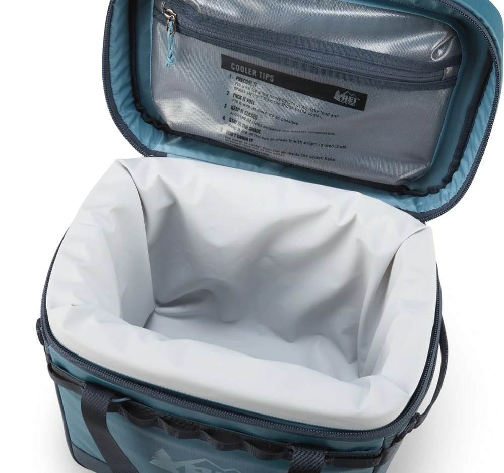 Chill enough food and drink for a weekend of camping or a very long road trip. The REI Co-op Cool Haul 18 soft cooler filled with 10 lbs. of ice will keep 18 cans below 40°F for up to 65 hrs.