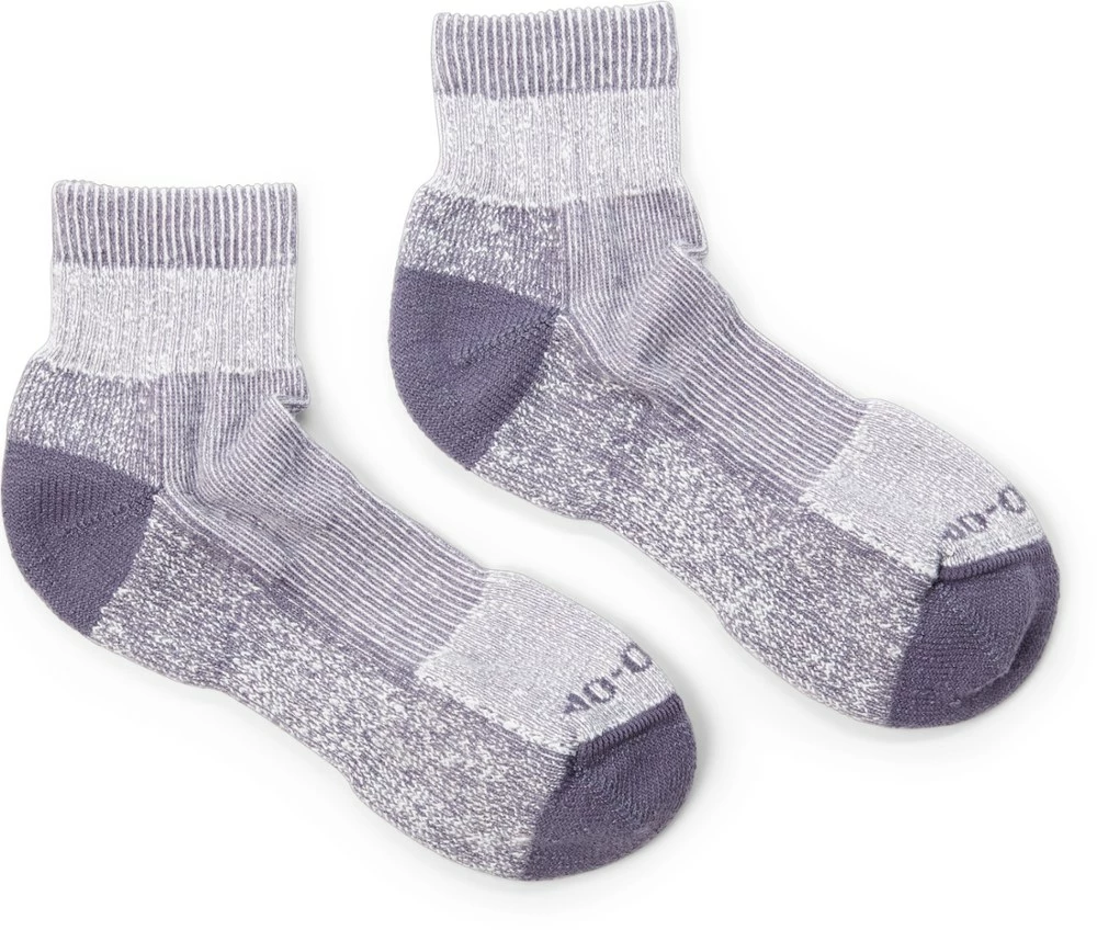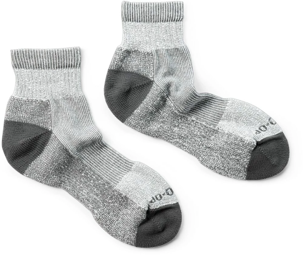 Made for warm days on the trail, the rugged REI Co-op COOLMAX EcoMade Lightweight hiking quarter socks are breathable and moisture-wicking to keep feet drier.