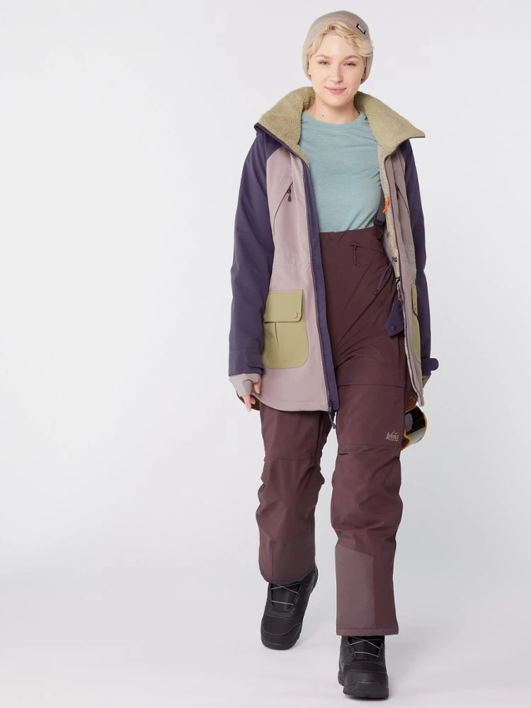 Drop into the backcountry or catch the first chair with trusted waterproof breathable GORE-TEX tech—plus a nice amount of stretch. The women’s REI Co-op First Chair GTX bib snow pants are ready.