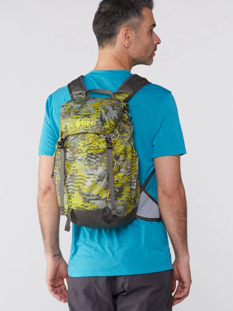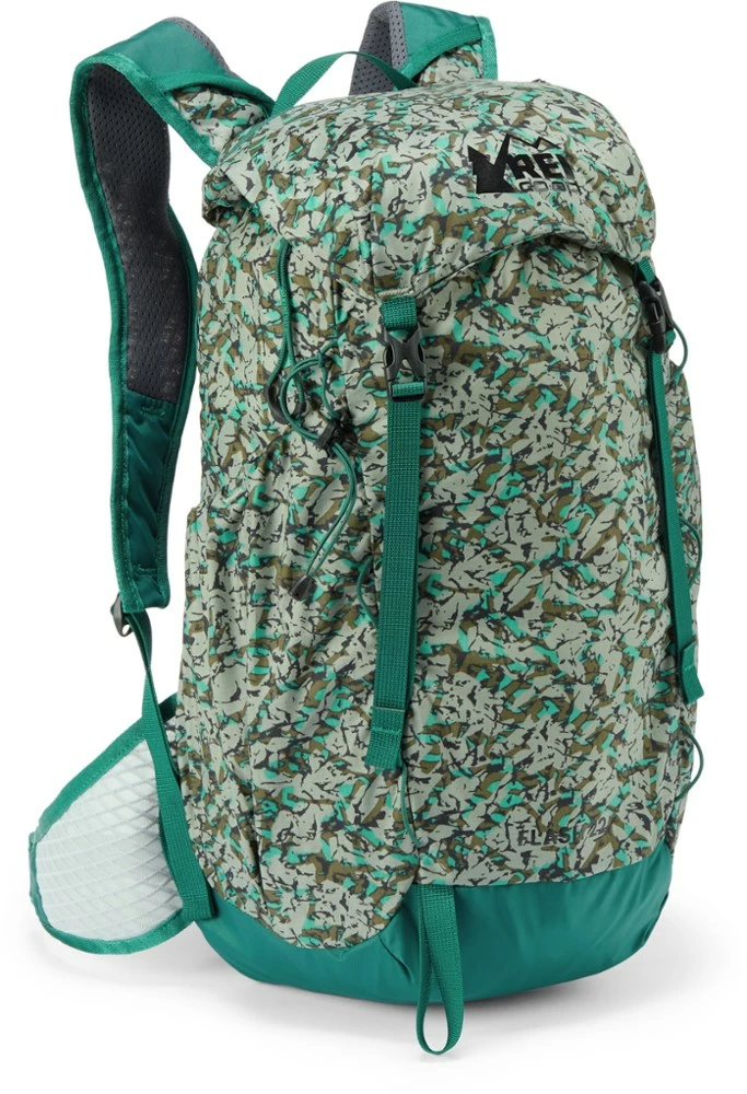 Stripped down to day-hike, summit-push weight, the 14 oz. REI Co-op print Flash 22 pack still gives you real comfort with a removable back pad, waist and sternum straps, and even a hydration sleeve.