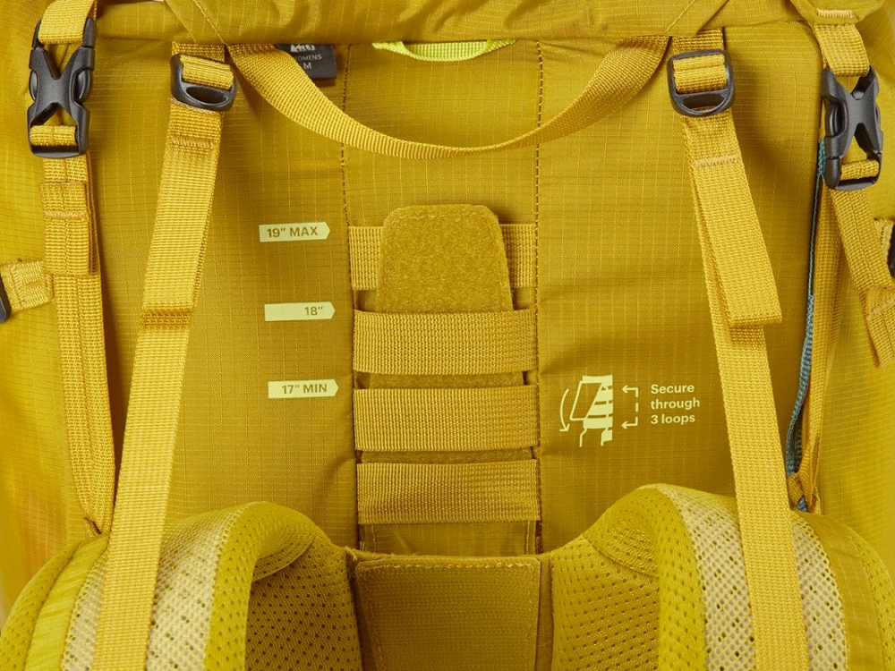 - Attachment loops and removable tool keeper allow trekking poles, ice axes, and more to be lashed on, expanding your carrying ability while keeping the load stable