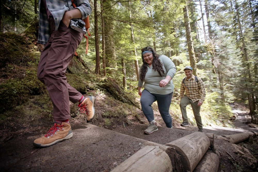 - Comfortable, high-rise, 3-layer waistband won’t budge as you hike