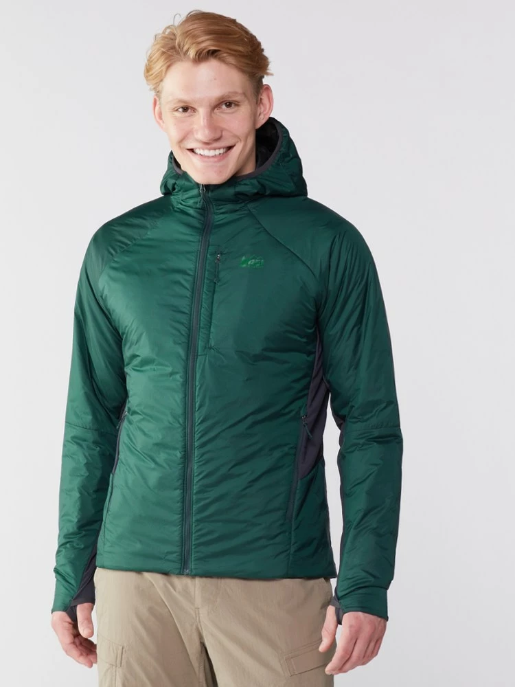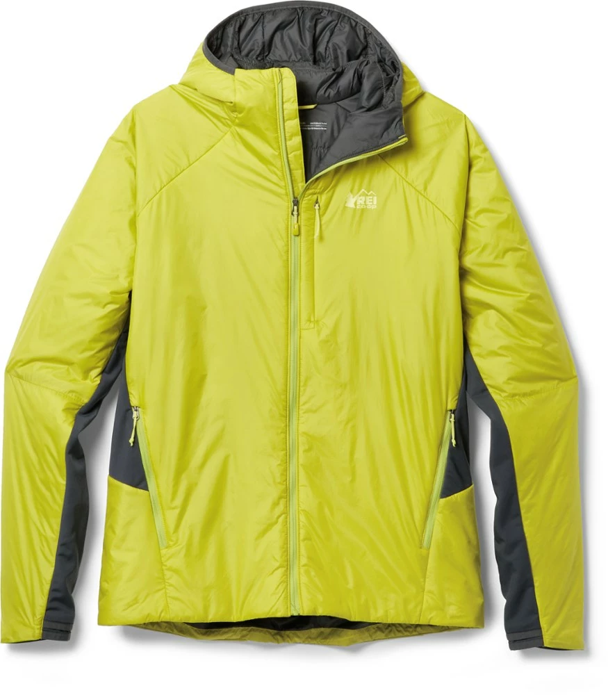Keep cozy close with the men’s REI Co-op Flash Insulated Hybrid hoodie. Keeping you warm with ShadowBaffleâ„¢ construction and recycled insulation, this one will be in heavy rotation.