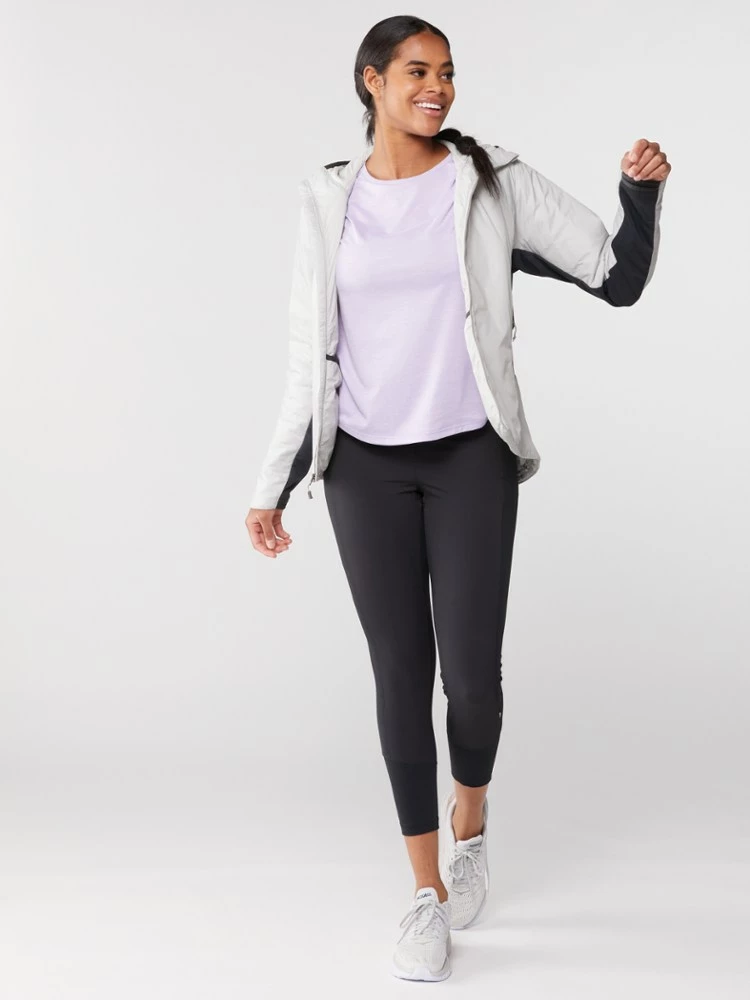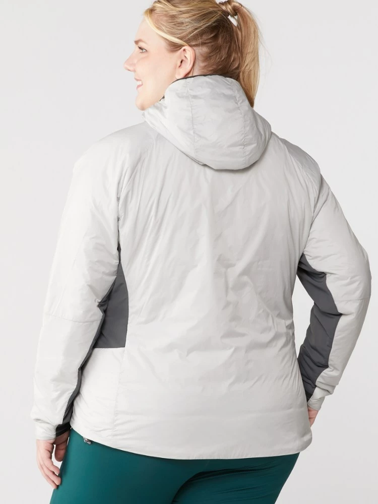 This one will be in heavy rotation. Keeping you warm with ShadowBaffleâ„¢ construction, the women’s REI Co-op Flash Insulated Hybrid hoodie is your cozy escape—made with recycled insulation.