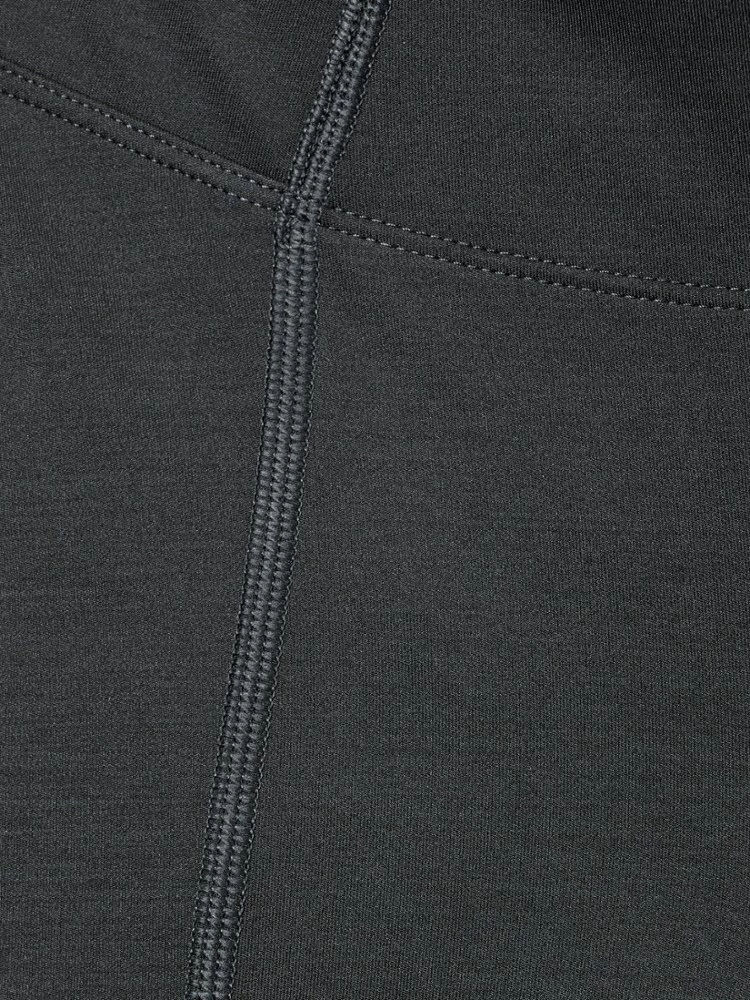- Heathered, brushed-back polyester/spandex fabric wicks moisture