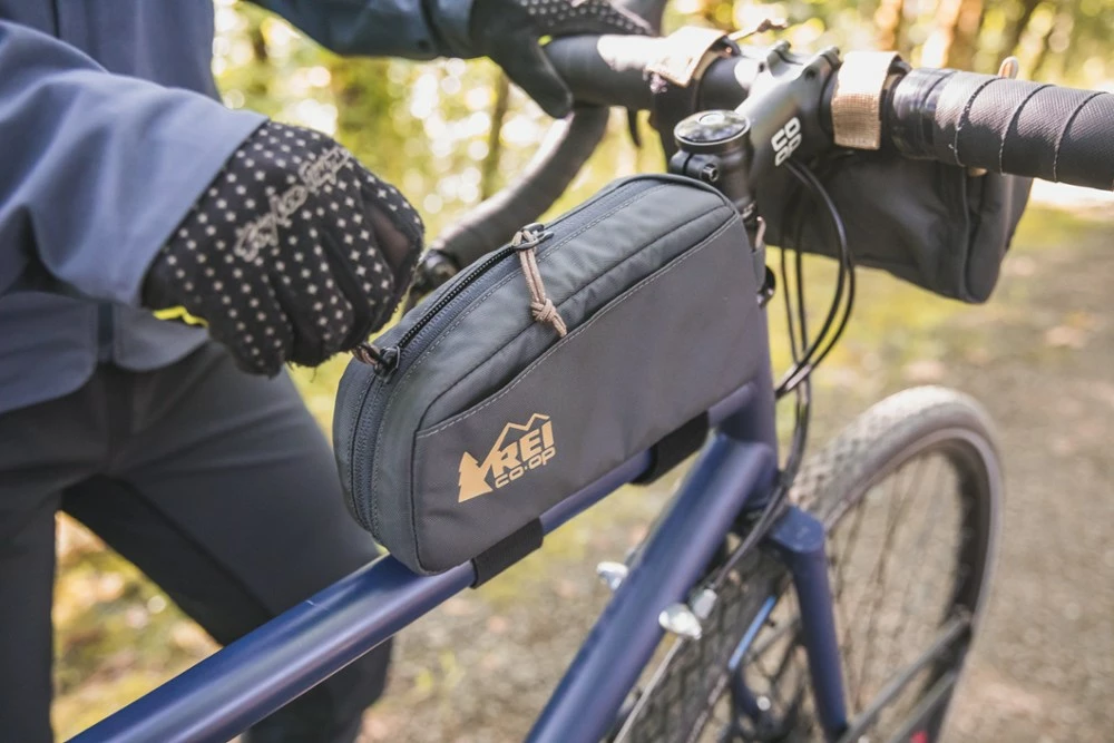 Keep tools and supplies close at hand while keeping weight centered for better handling with the REI Co-op Junction top tube bag. It has space for a minipump, extra tube, snacks and your wallet.