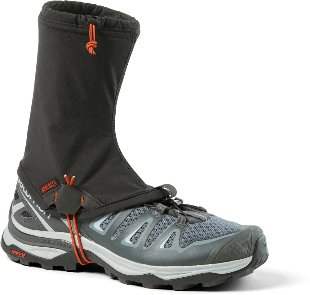 Scree field ahead, but no worry; pull on the REI Co-op Lightweight Hiker gaiters, put your boots or running shoes back on and proceed—these stretchy gaiters keep out the grit without slowing you down.
