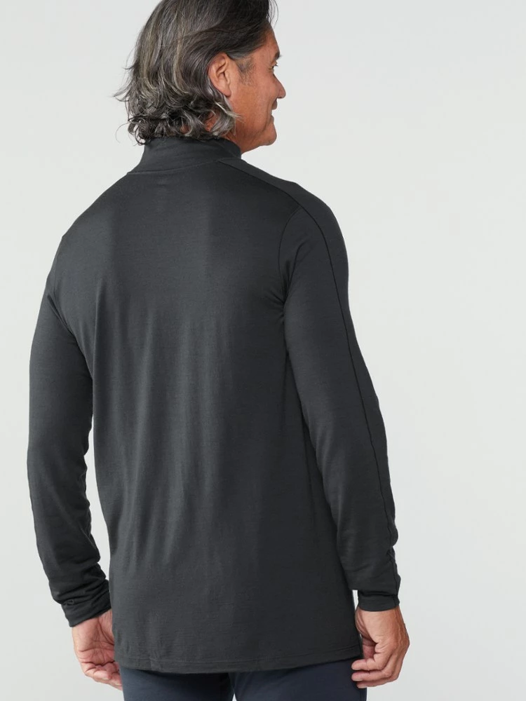 The ultrafine merino wool of the men’s REI Co-op Merino 185 long-sleeve half-zip base layer top is an ideal soft, breathable, odor-resistant layer for sweating on the trail—and sleeping in a tent.