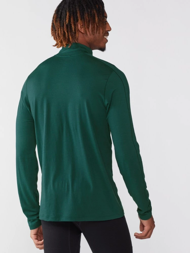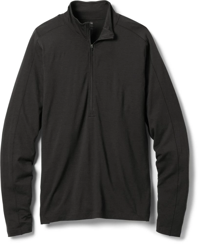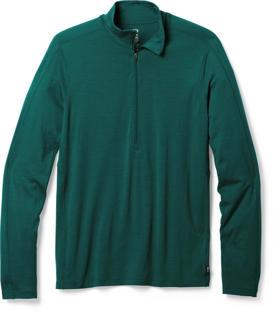 Soft and breathable, the ultrafine merino wool of the naturally odor-resistant men’s REI Co-op Merino 185 long-sleeve half-zip base layer top is ideal for sweating on the trail—and sleeping in a tent.