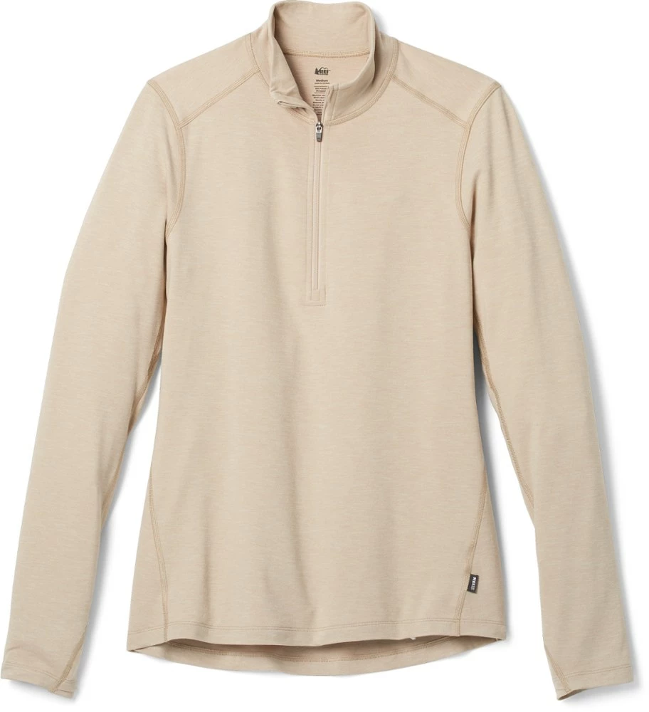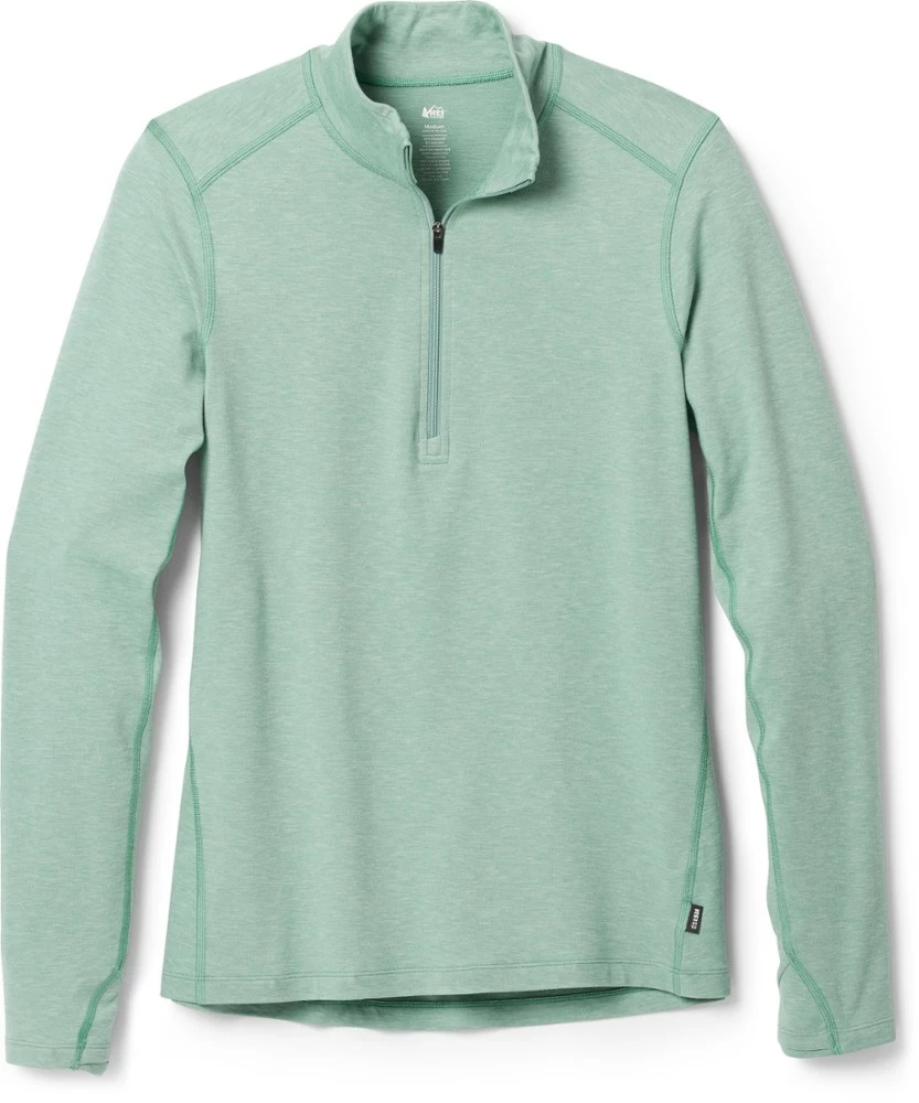 The women’s REI Co-op Midweight Base Layer Half-Zip Top offers warmth in the cold with long sleeves and easy venting thanks to a front zipper.