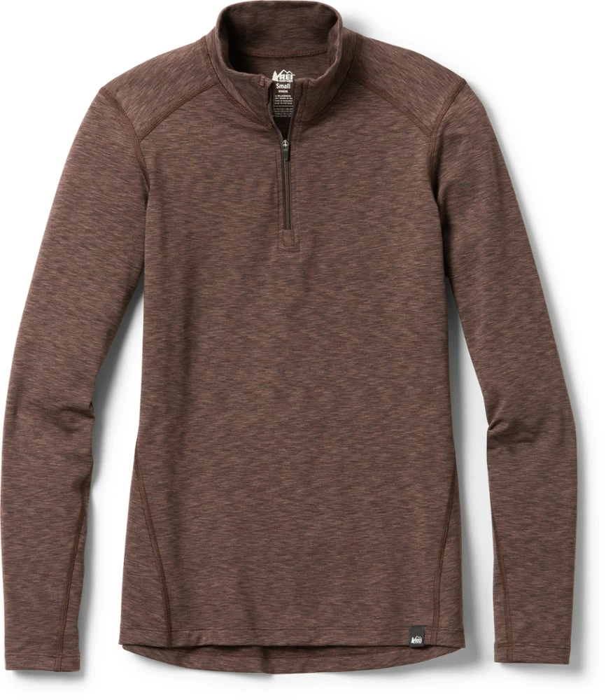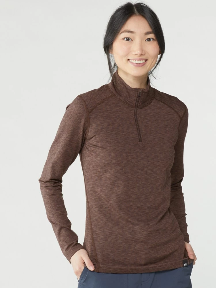 An ideal first layer for playing hard on cold days, the women’s REI Co-op Midweight Base Layer half-zip top offers the warmth of long sleeves and easy venting thanks to a front zipper.