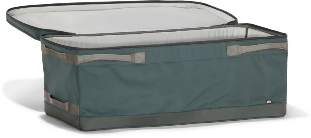 Messy gear closets and haphazardly stuffed car trunks, rejoice! The collapsible REI Co-op Pack-Away Bin works with the Pack-Away cubes to organize your whole camping kit—from sleeping bags to sporks.