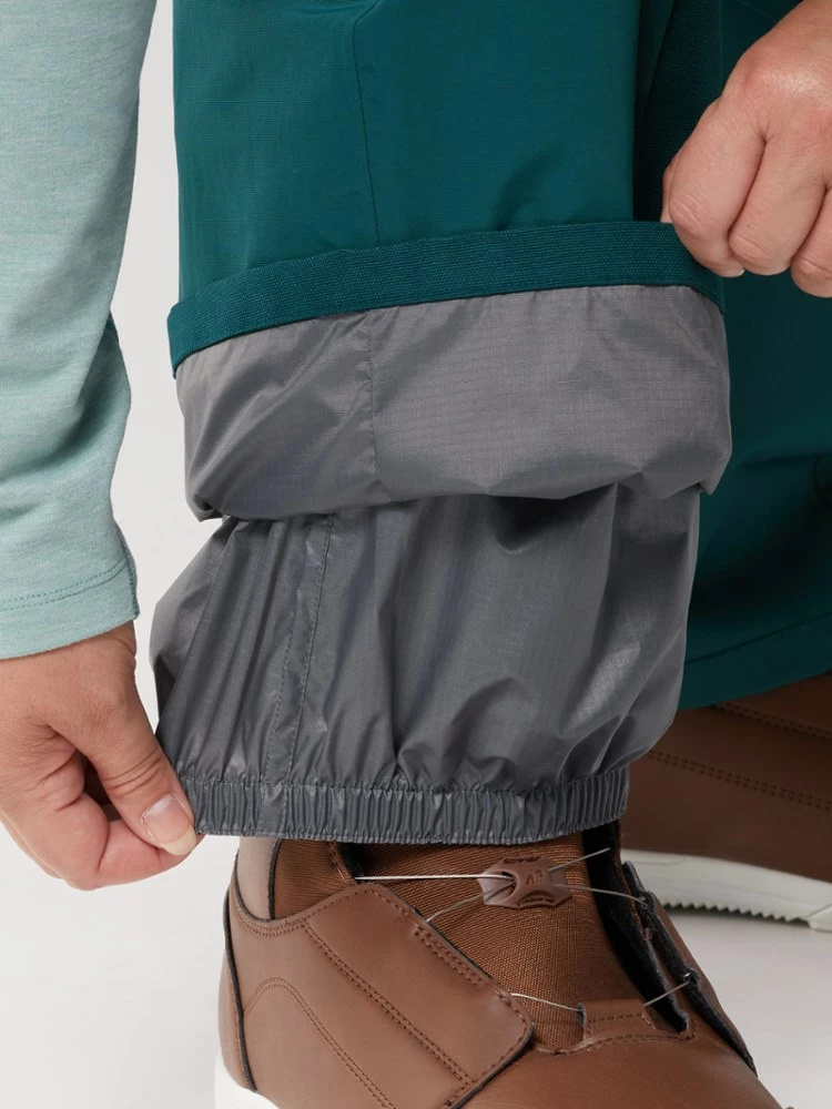- Boot gaiters with grippy elastic seal out snow; tough scuffguard and reinforced hems provide durable protection in a placement that works for both skiers and snowboarders