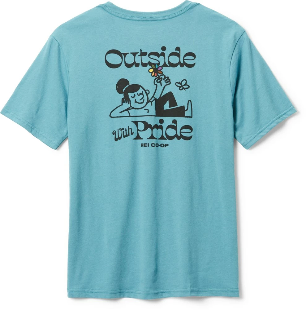 The REI Co-op Pride graphic T-shirt celebrates the good life, outside with pride. And it respects natural life—it’s made with recycled polyester and organically grown cotton.