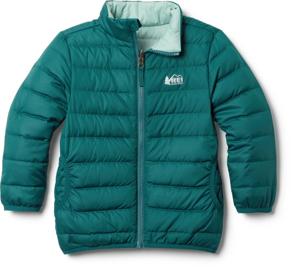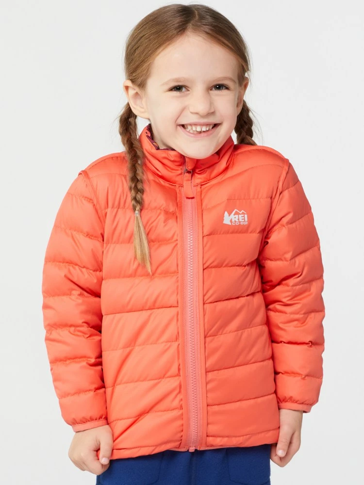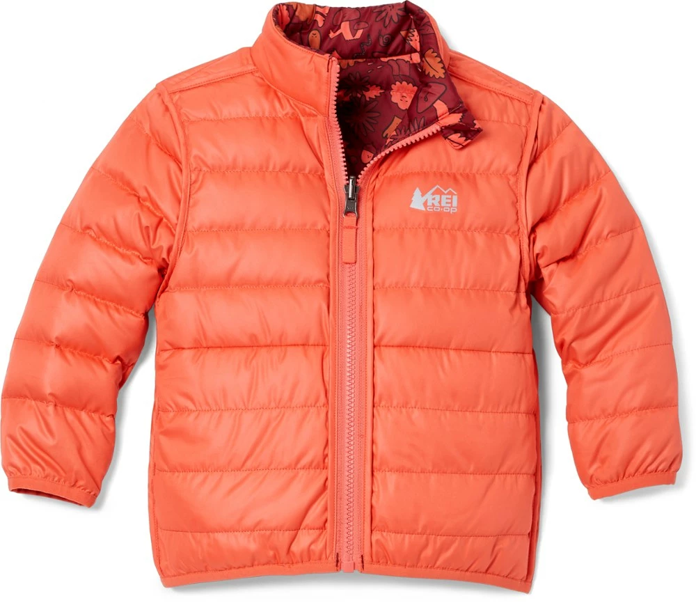 The light and warm toddlers’ REI Co-op 650 Reversible down jacket keeps your tot cozy while avoiding snowsuit bulk, plus it reverses in case things get messy—and things always get messy.
