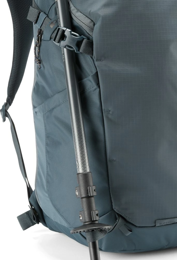 - Trekking-pole attachments tuck out of the way when not in use