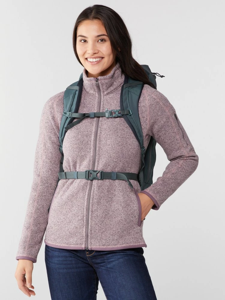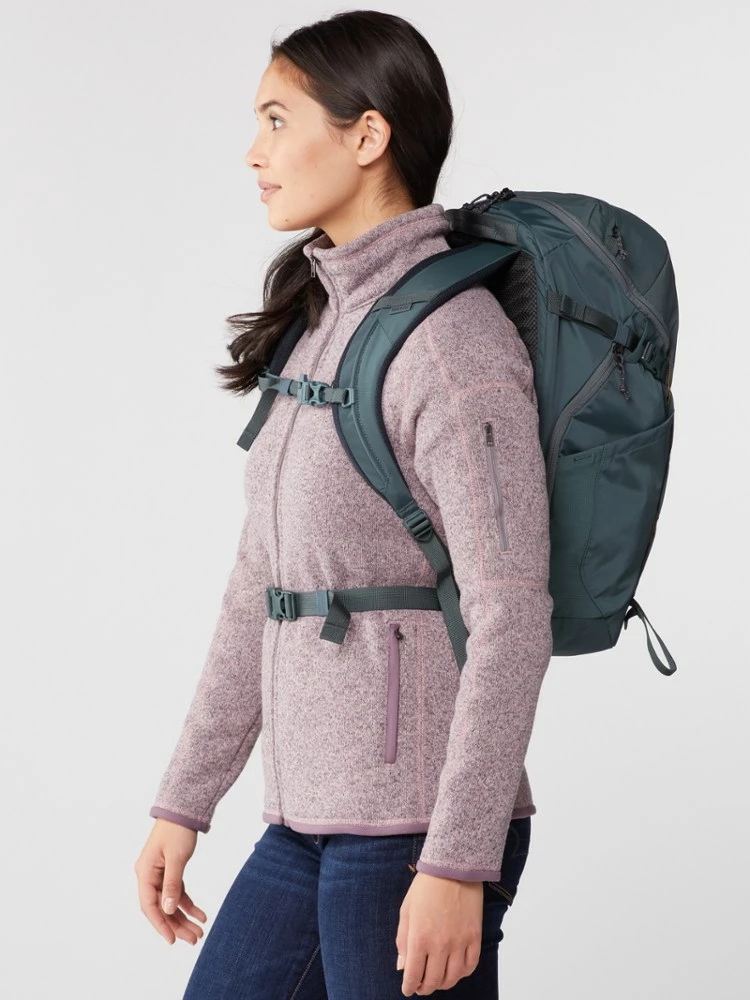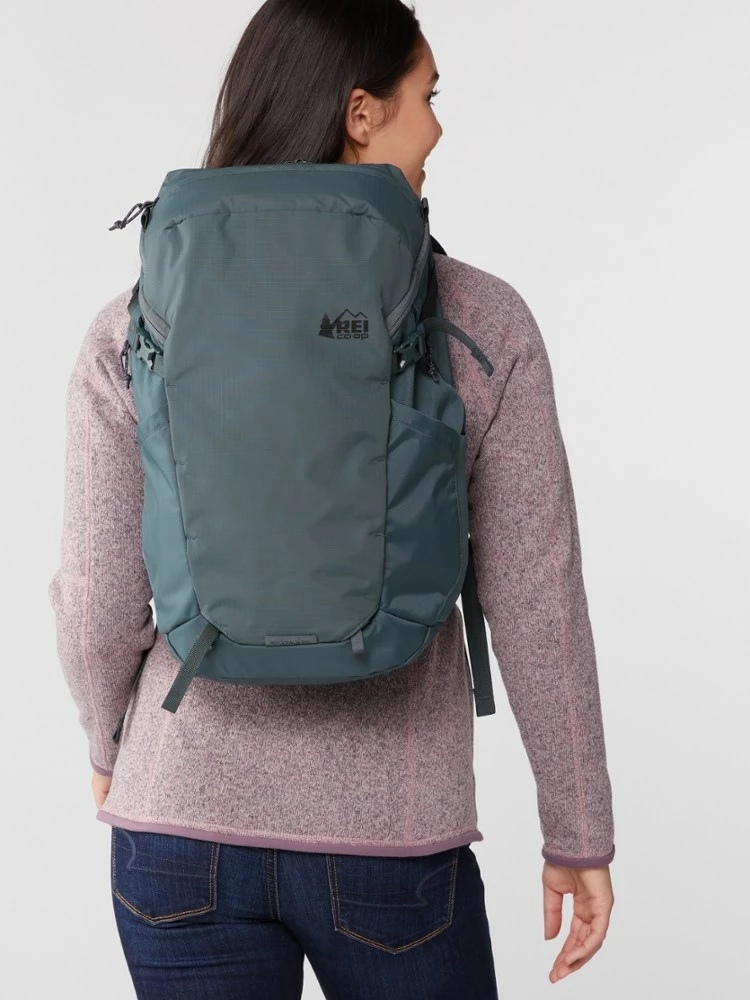 Great for long day hikes and short flights, the women’s 28-liter REI Co-op Recycled Ruckpack gives you the comfort and support of a hiking pack, plus the organization you want when you’re traveling.
