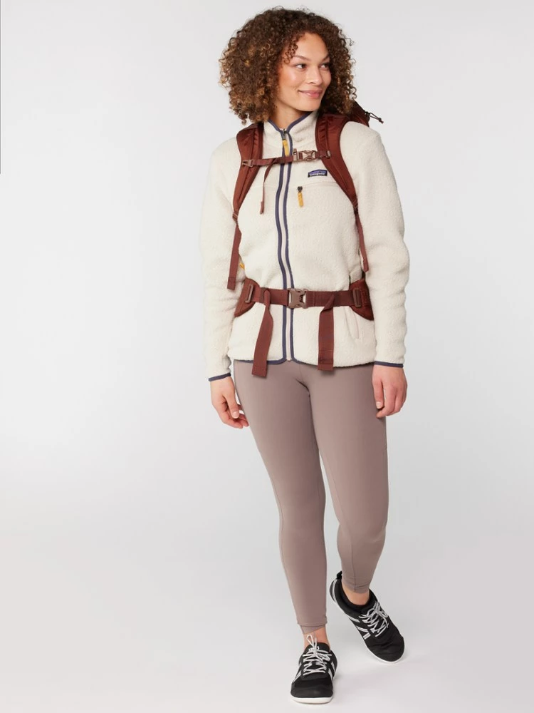 - Women-specific fit includes shaped harness straps that curve differently around the chest, shorter torso length and a longer hipbelt strap to accommodate a range of hip sizes