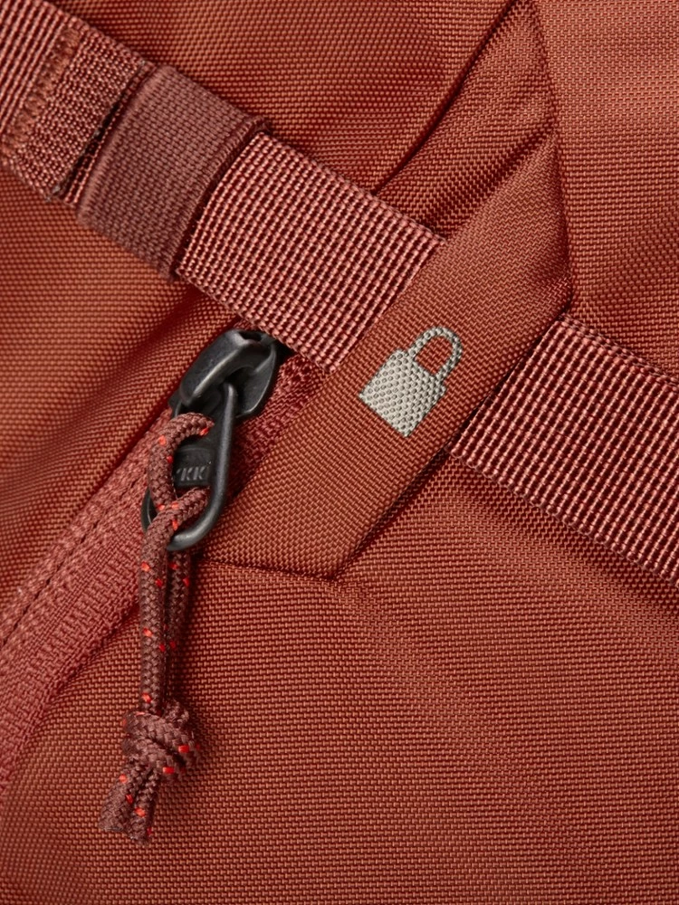 - Hidden daisy chain on the front of the bag lets you lash on gear when needed