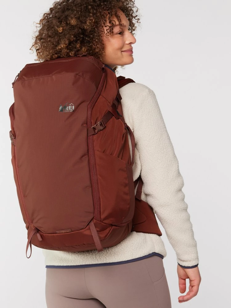 When you need a home base for days on the road, the women’s REI Co-op Recycled Ruckpack 40 pack delivers—it’s got the support of a backpack, plus the storage and organization for multi-day trips.