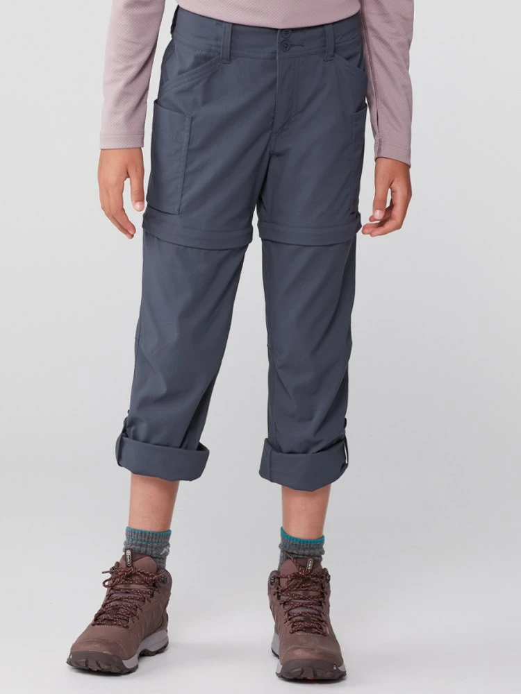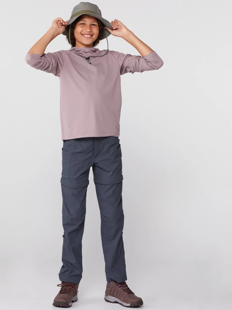 As the sun climbs in the sky and the switchbacks get steeper, the girls’ REI Co-op Sahara convertible pants deal with it quickly and easily—zippers provide an instant transition from pants to shorts.