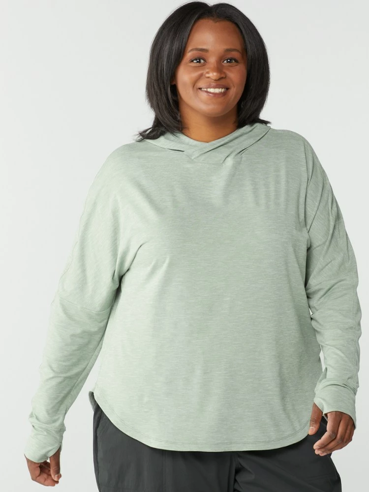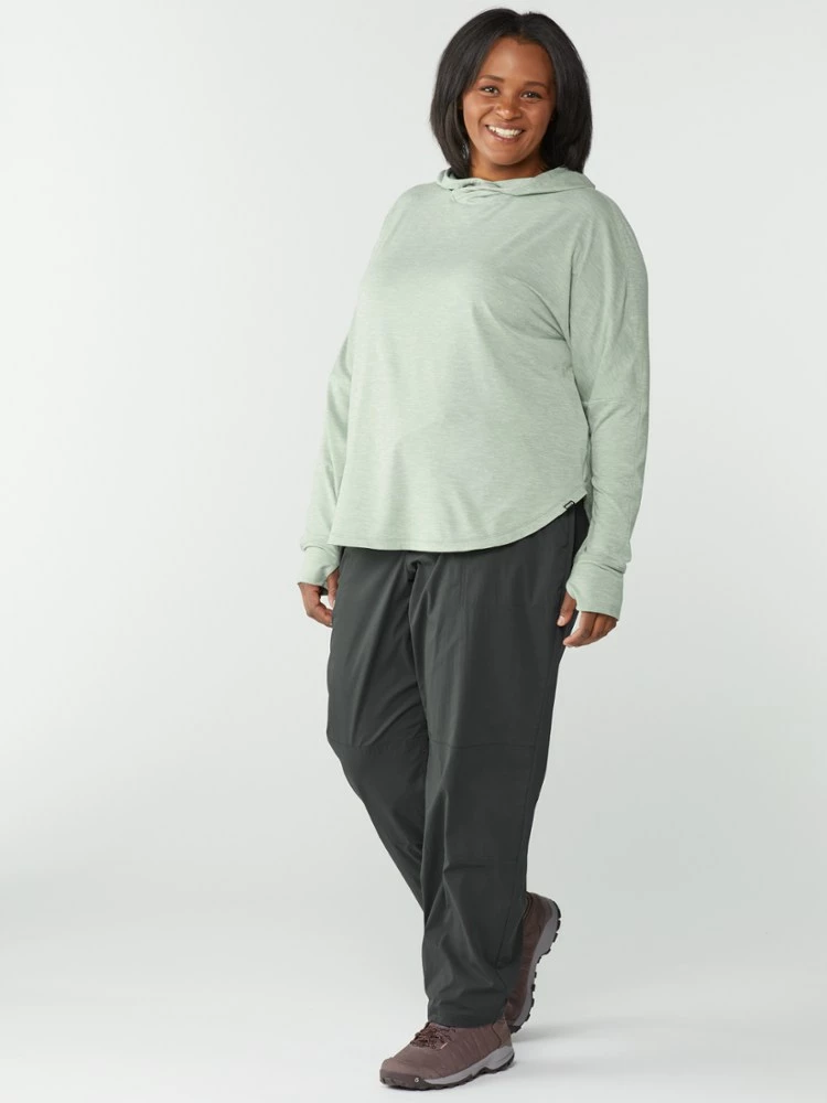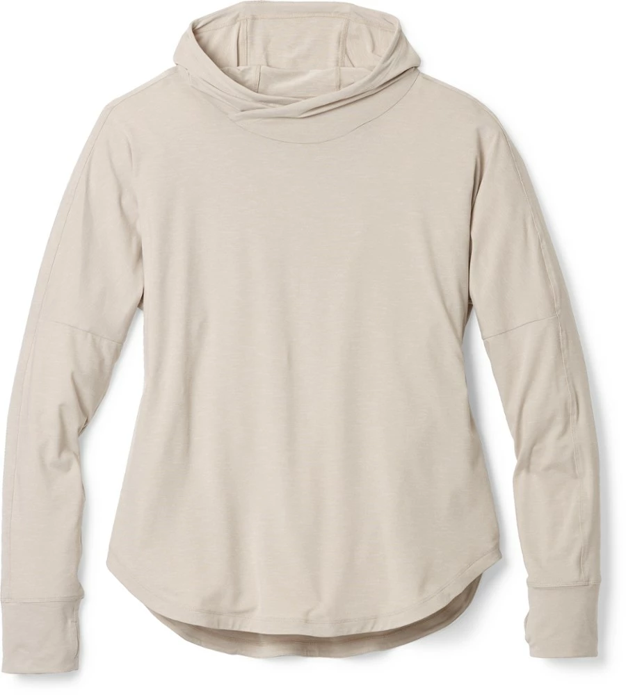 Move like you’re in a tee but fully protected from the sun’s rays. The women’s REI Co-op Sahara Shade Hoodie is built for the trail with a tech-tee-like knit that wicks moisture and provides shade.