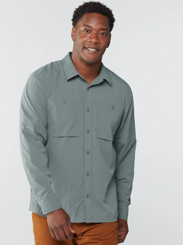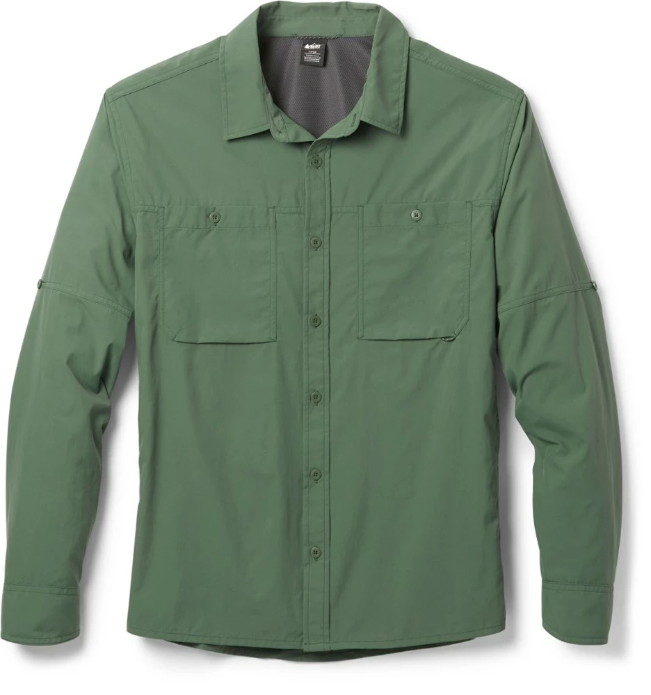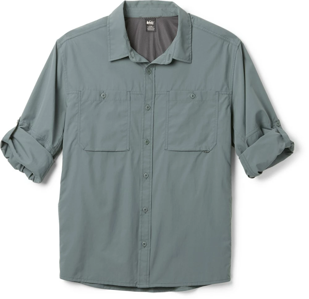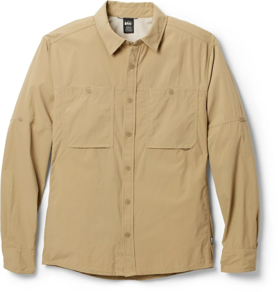Exploring a new trail close to home, or one that’s far, far away, the men’s REI Co-op Sahara solid long-sleeve shirt keeps you cool and comfy with wicking, quick-drying fabric and a vented back.