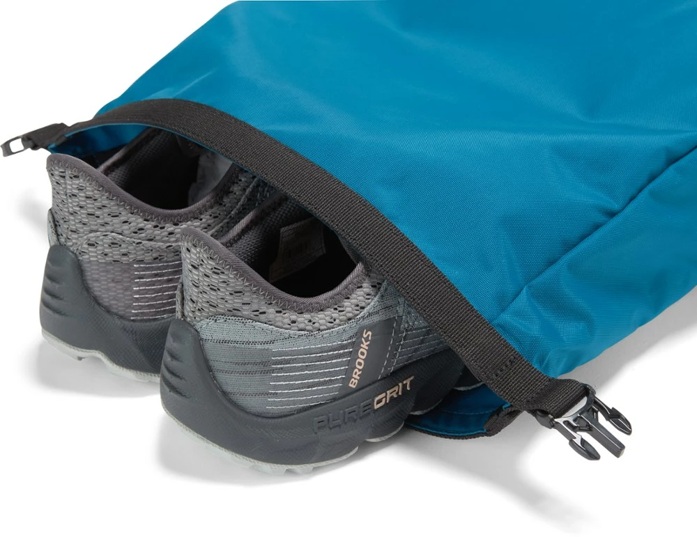 In the battle of muddy hiking boots versus clean clothes, the REI Co-op Shoe Bag wins. Pack shoes up to a men’s size 14 and cinch down this bag to take up the least amount of space in your luggage.
