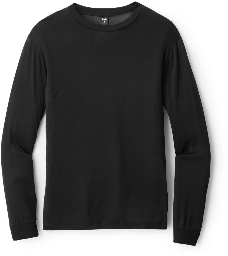 Lightweight and supple, the REI Co-op Silk long-sleeve crew shirt provides great warmth for its weight and offers luxurious comfort.