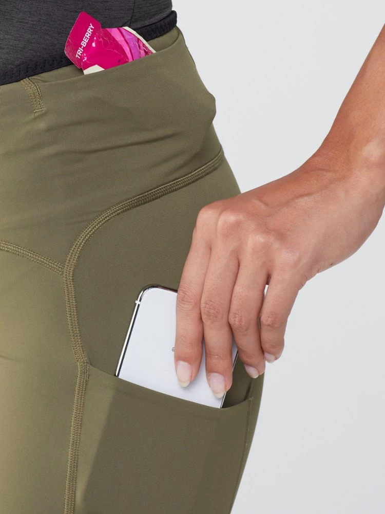 - Drop-in compression pockets on each thigh carry a phone and power snacks; stash your keys and a card in the internal waistband slip pocket