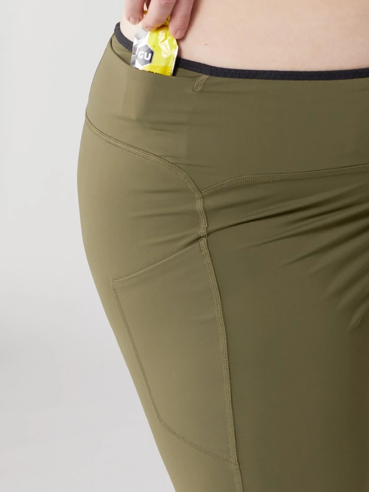 - Drop-in, phone-size pockets at each thigh, drop-in pockets at either side on the waistband, and an internal waistband key/card pocket keep you supplied on the trail