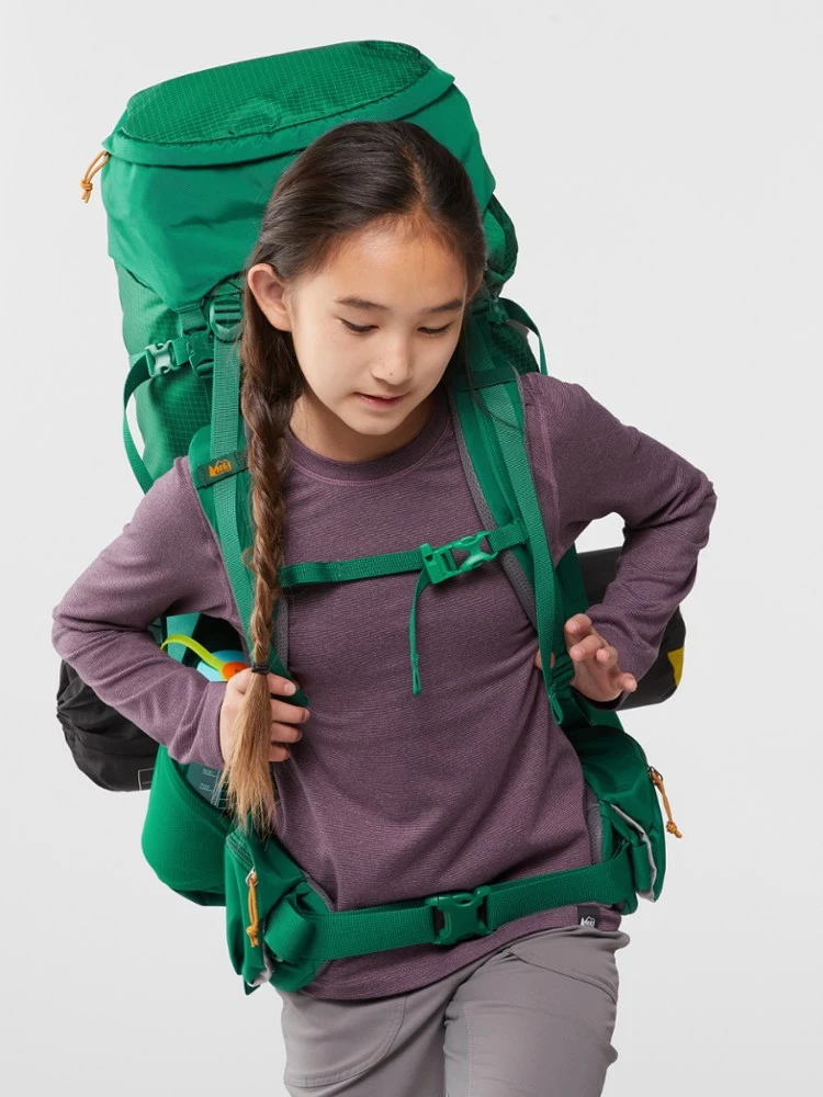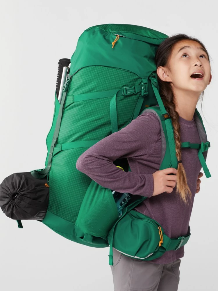 Thanks to the adjustable torso and hipbelt, the REI Co-op Tarn 65 pack grows with kids, teens and tweens—and their love of hiking! And its breathable, padded back makes long hauls comfy, too.