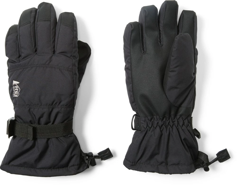Ready for all-day snow fun, the kids’ REI Co-op Timber Mountain gloves are waterproof, breathable and warm, with gauntlet cuffs that cinch down to keep out cold and snow.