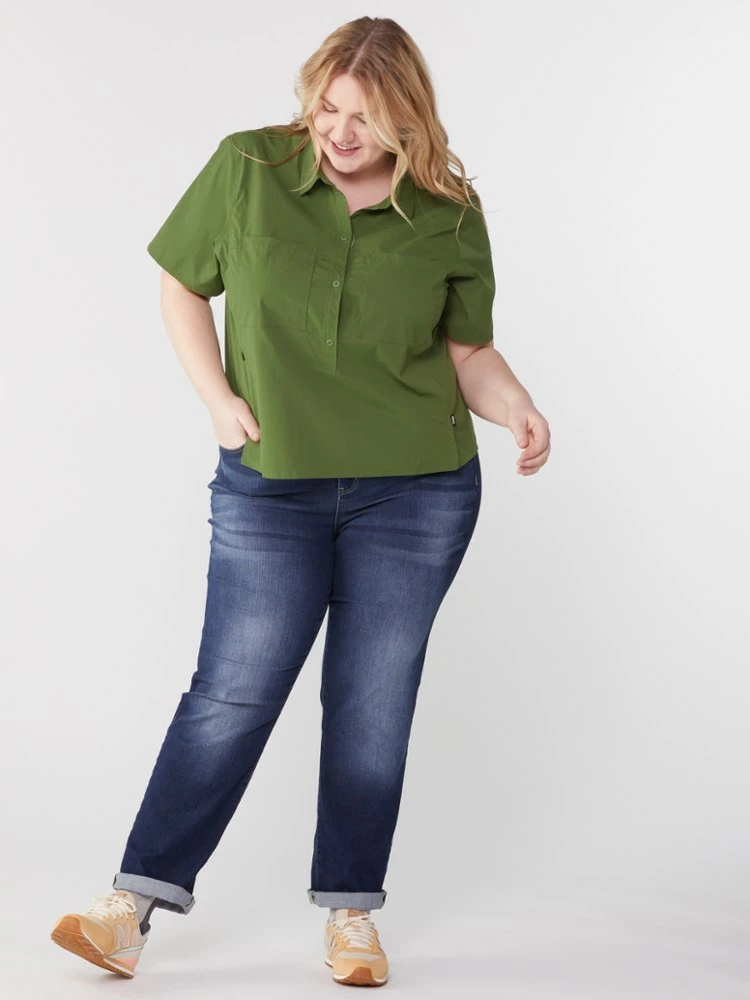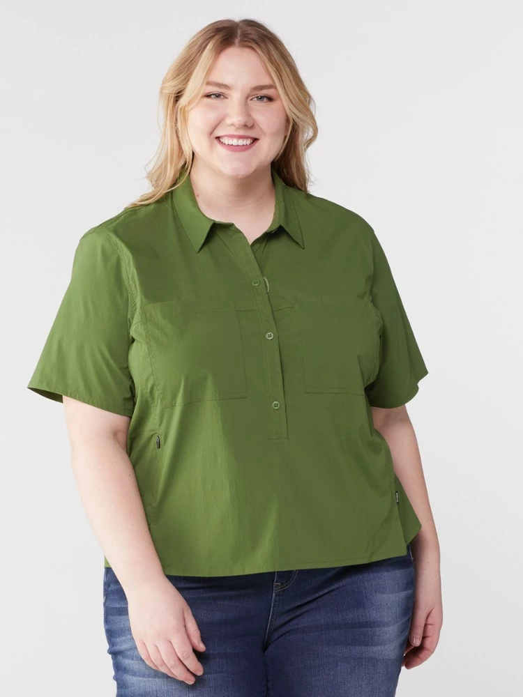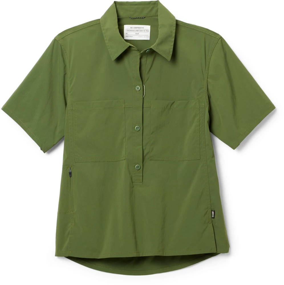 Explore freely in the women’s REI Co-op Trailmade short-sleeve pullover—designed with sun protection, trail-ready pocketing and lightweight nylon that breathes and sheds light moisture on hikes.