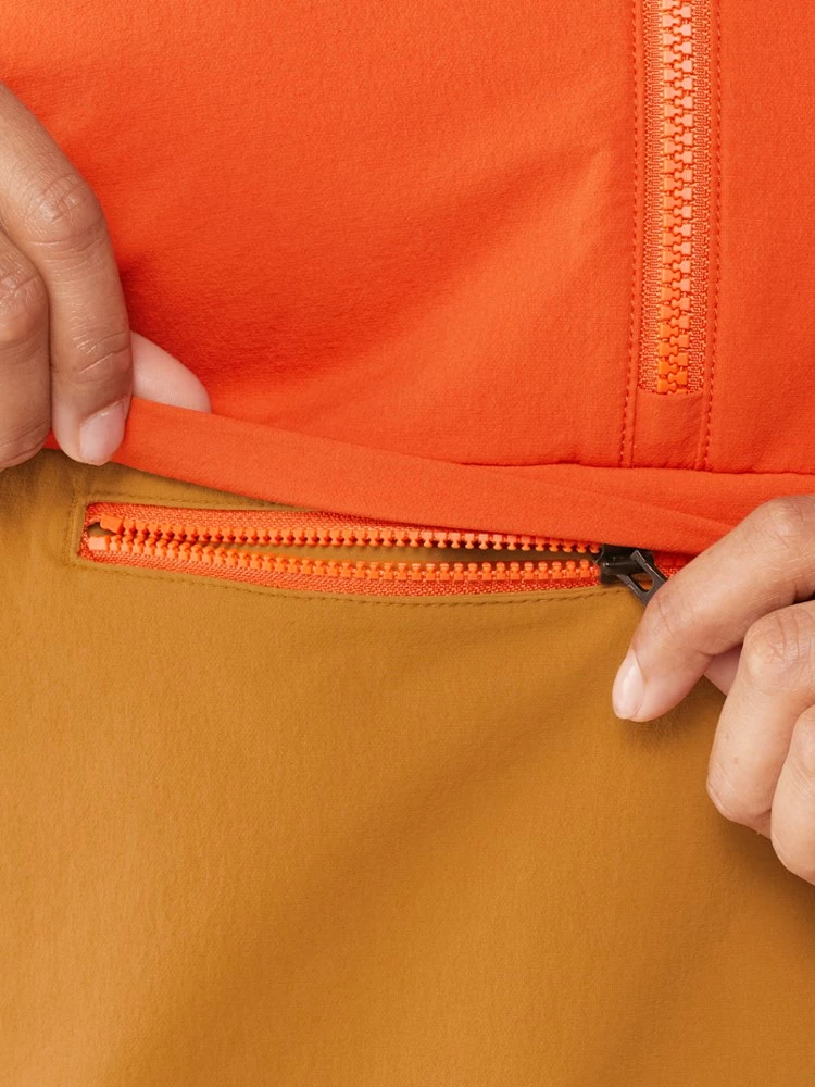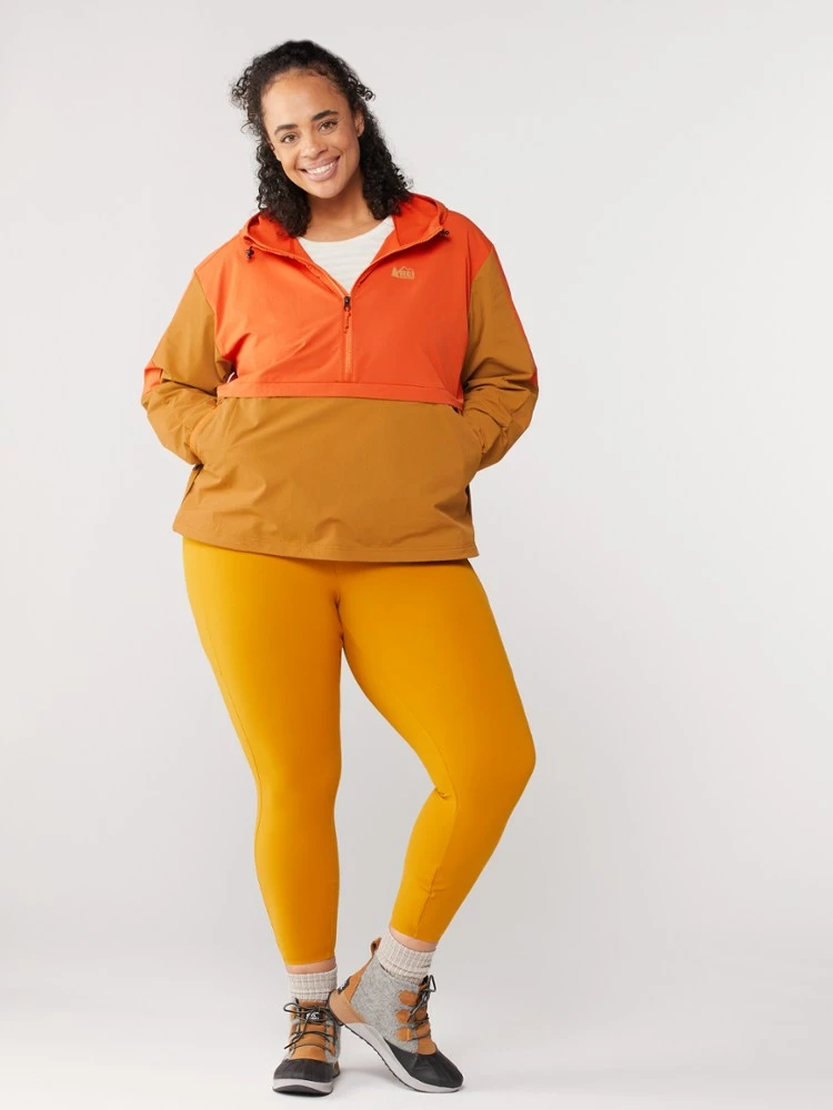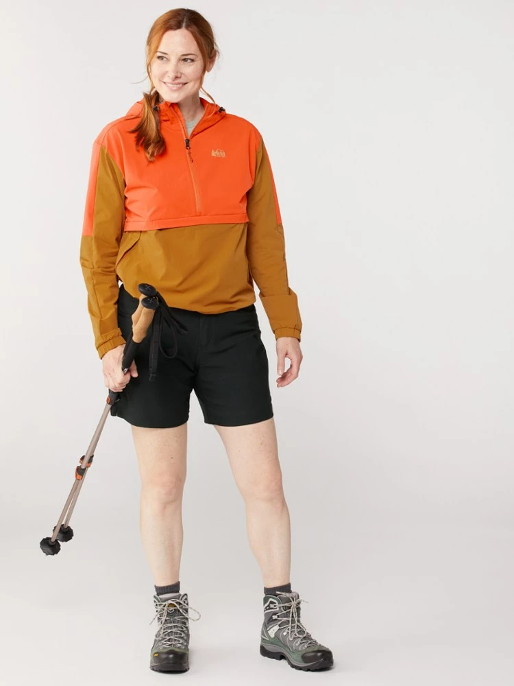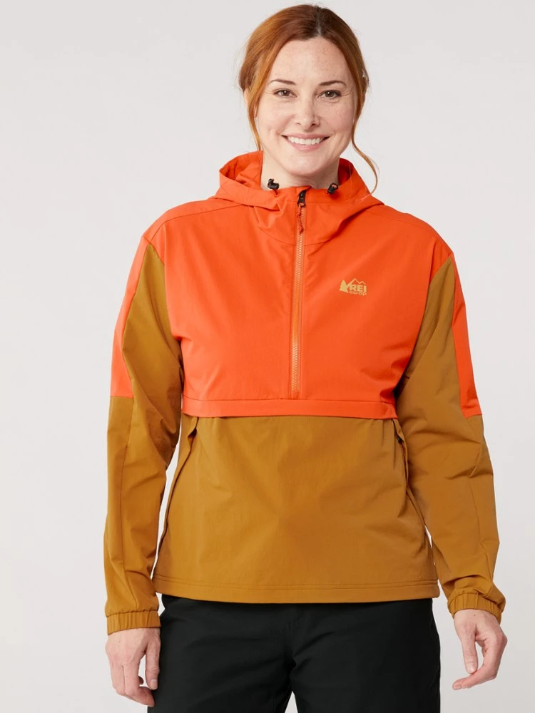 Hike that windy ridgeline. The women’s REI Co-op Trailmade soft-shell anorak is built to block wind and light rain with its stretch-nylon double-weave shell—it’s time to gear up and go.