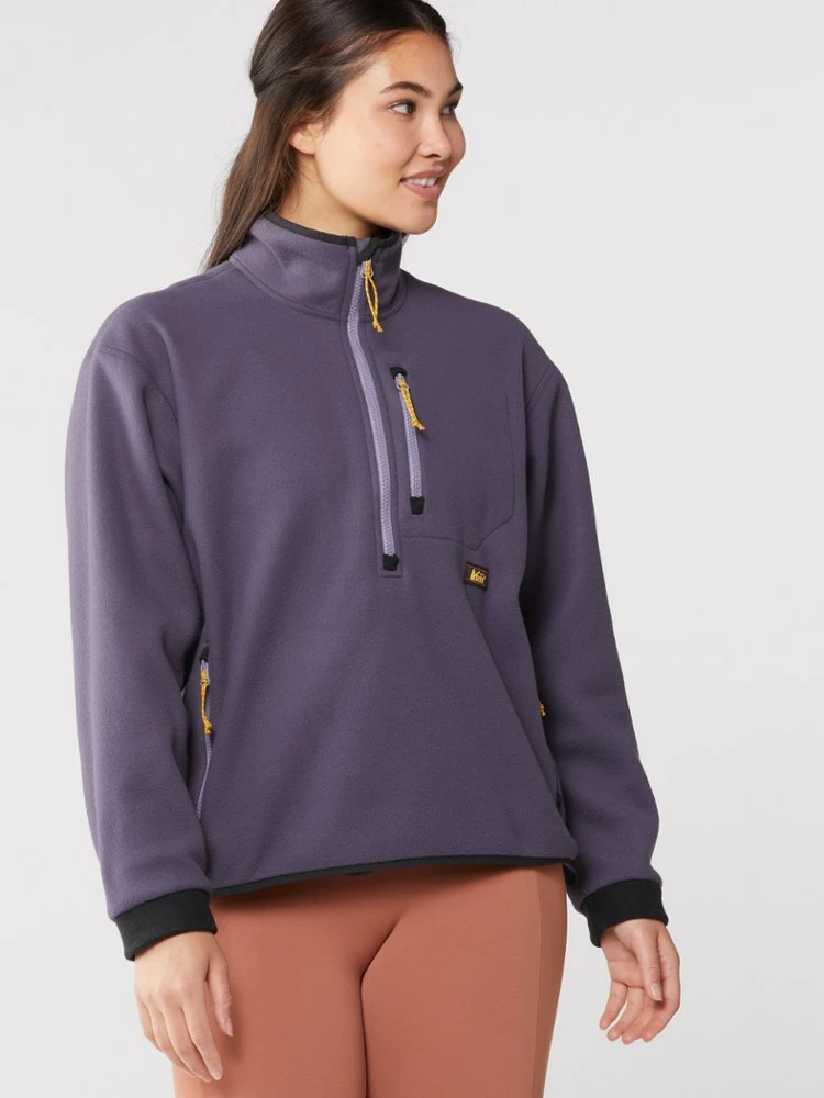 Back from our 1992 catalog and updated with recycled material, the women’s REI Co-op Trailsmith fleece pullover stays true to its roots with Polartec® fleece, a relaxed fit and even our retro labels.