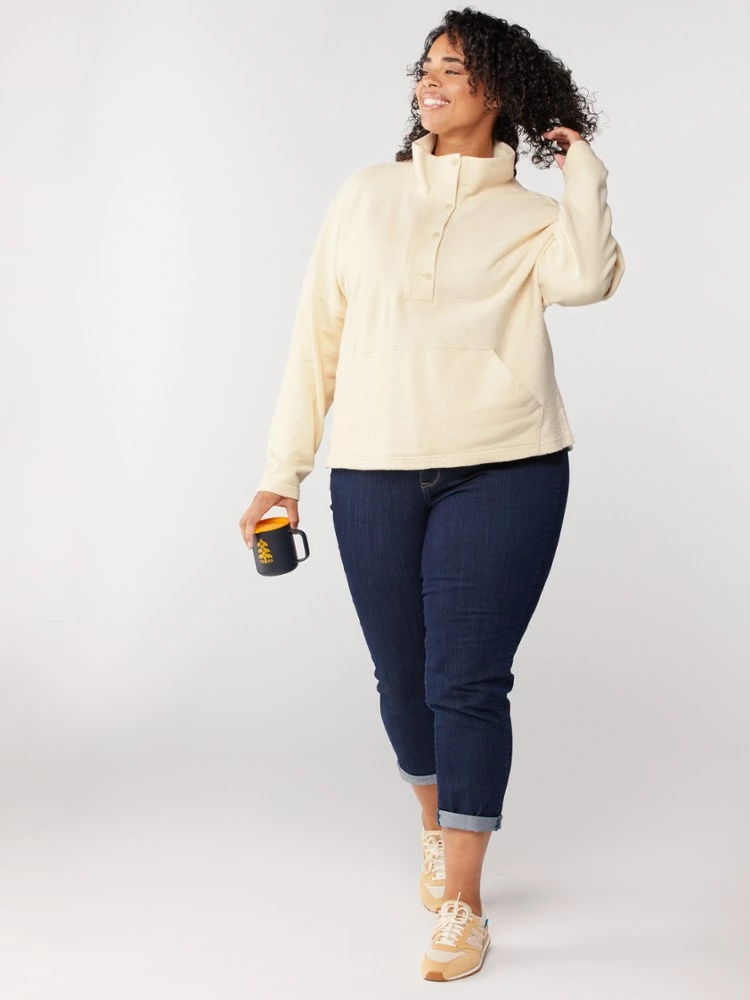 After 80 years on the trail, we’ve learned which details make a difference—like the easy-to-wash natural fibers of the women’s REI Co-op Wallace Lake Fleece Pullover that make it a campfire classic.