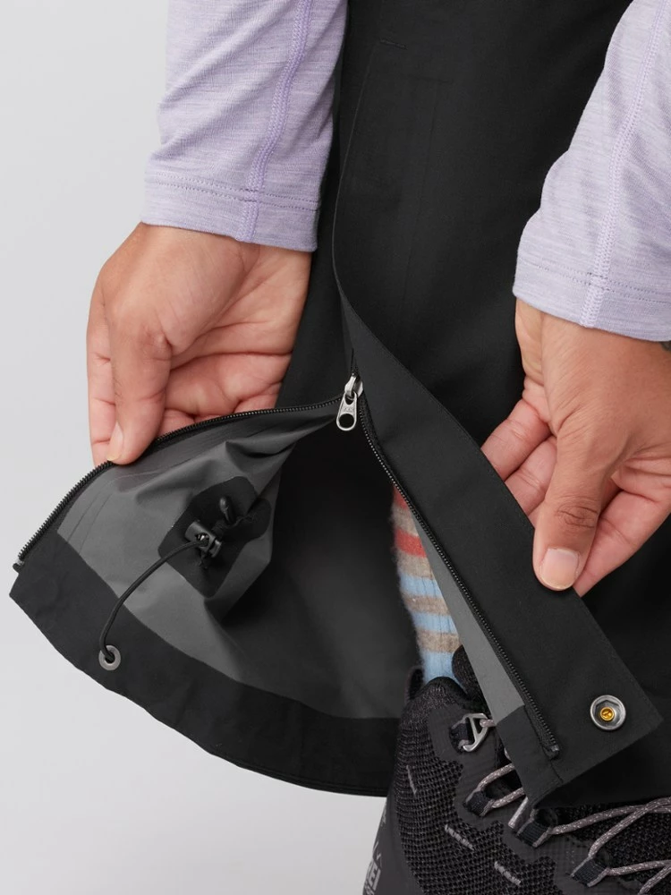 - Ankle zips with snaps allow easy on and off, while also improving the fit over boots